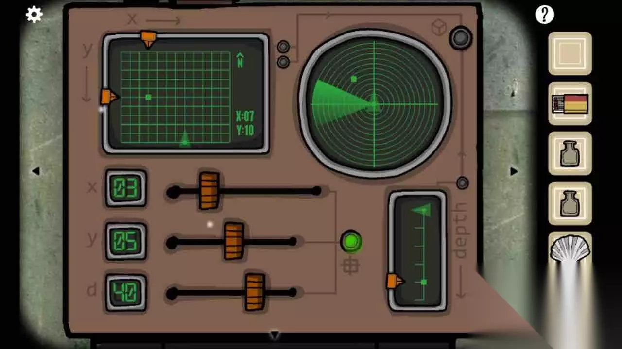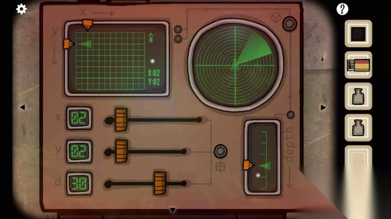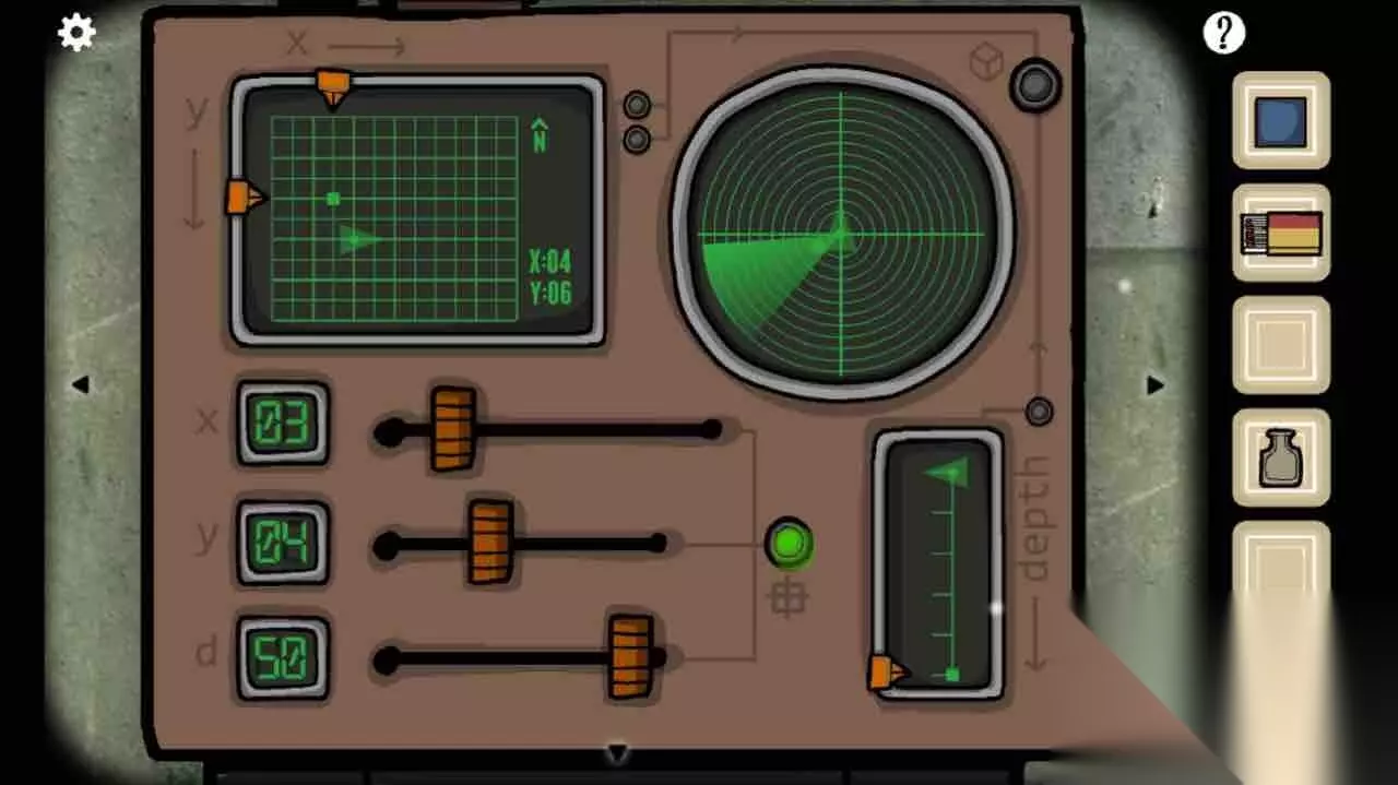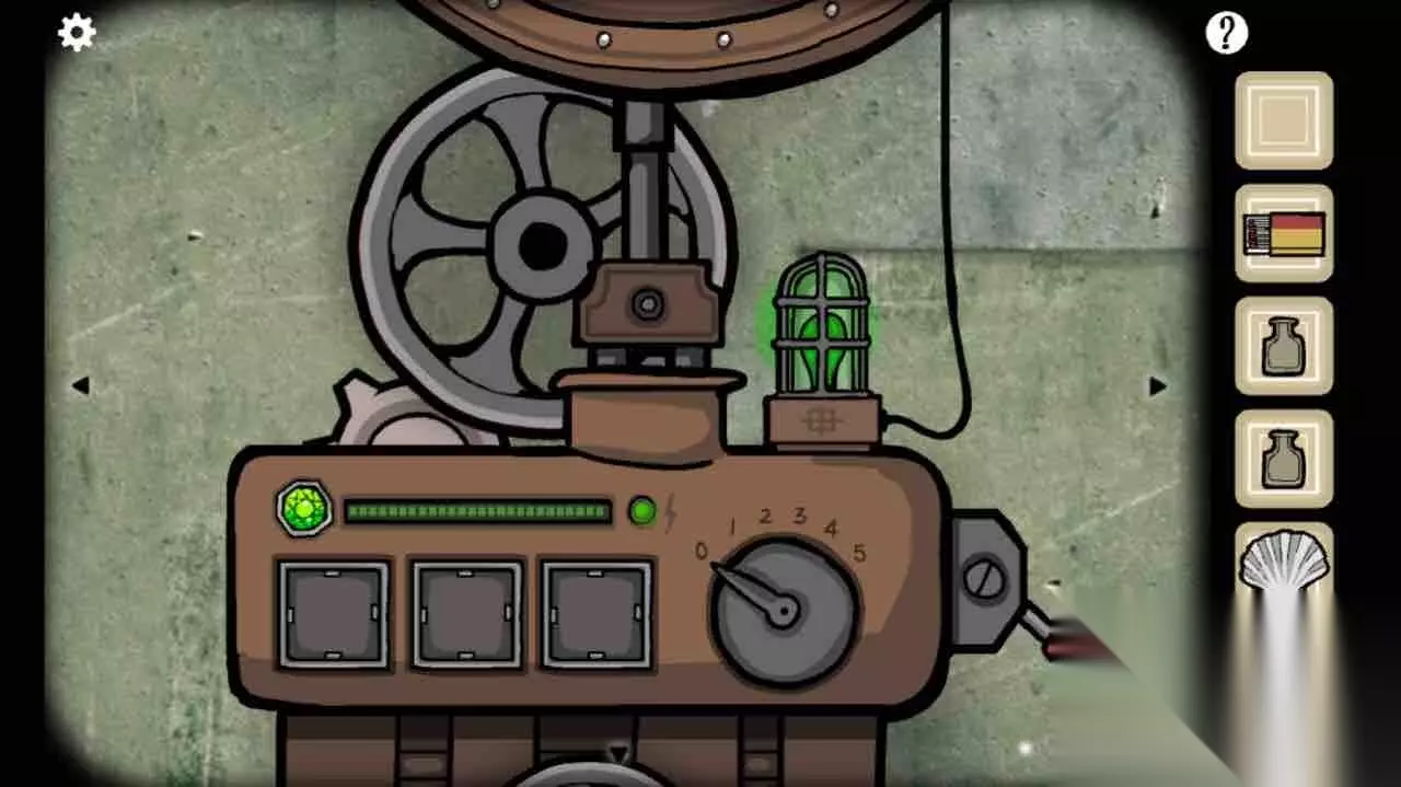 根据第四幅图左上角和右上角的红绿箭头转好旋钮。进入潜水艇。