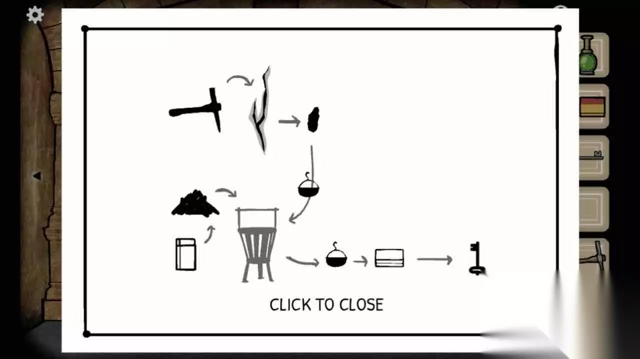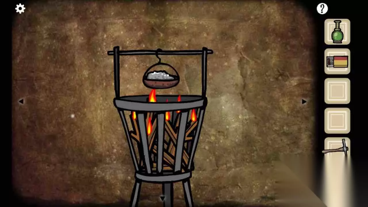 拿稿子砸开墙得到铁块。 第12关 找到罐子和木头,用火柴将木头点着,挂上罐子,放入铁块,熬成铁水。