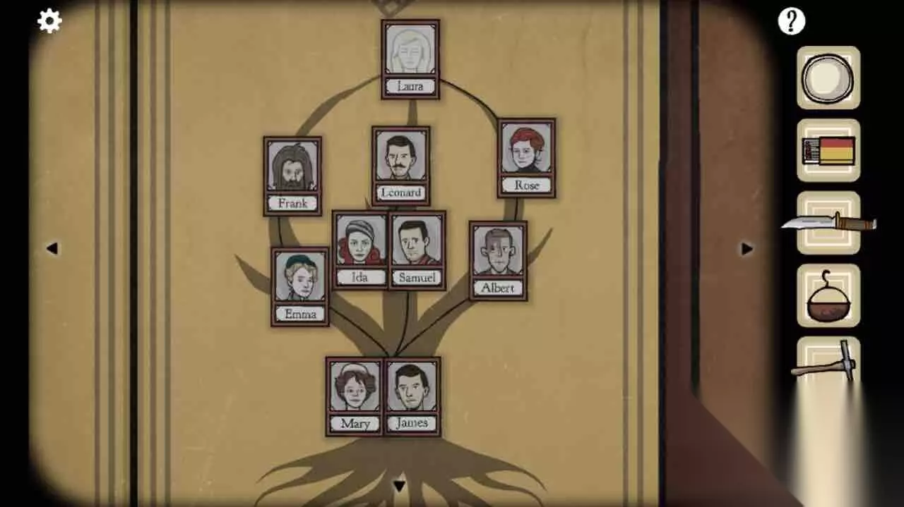 第4关 翻开书,摆对Vanderboom家族的照片(可以根据前作或者照片后的阴影)。