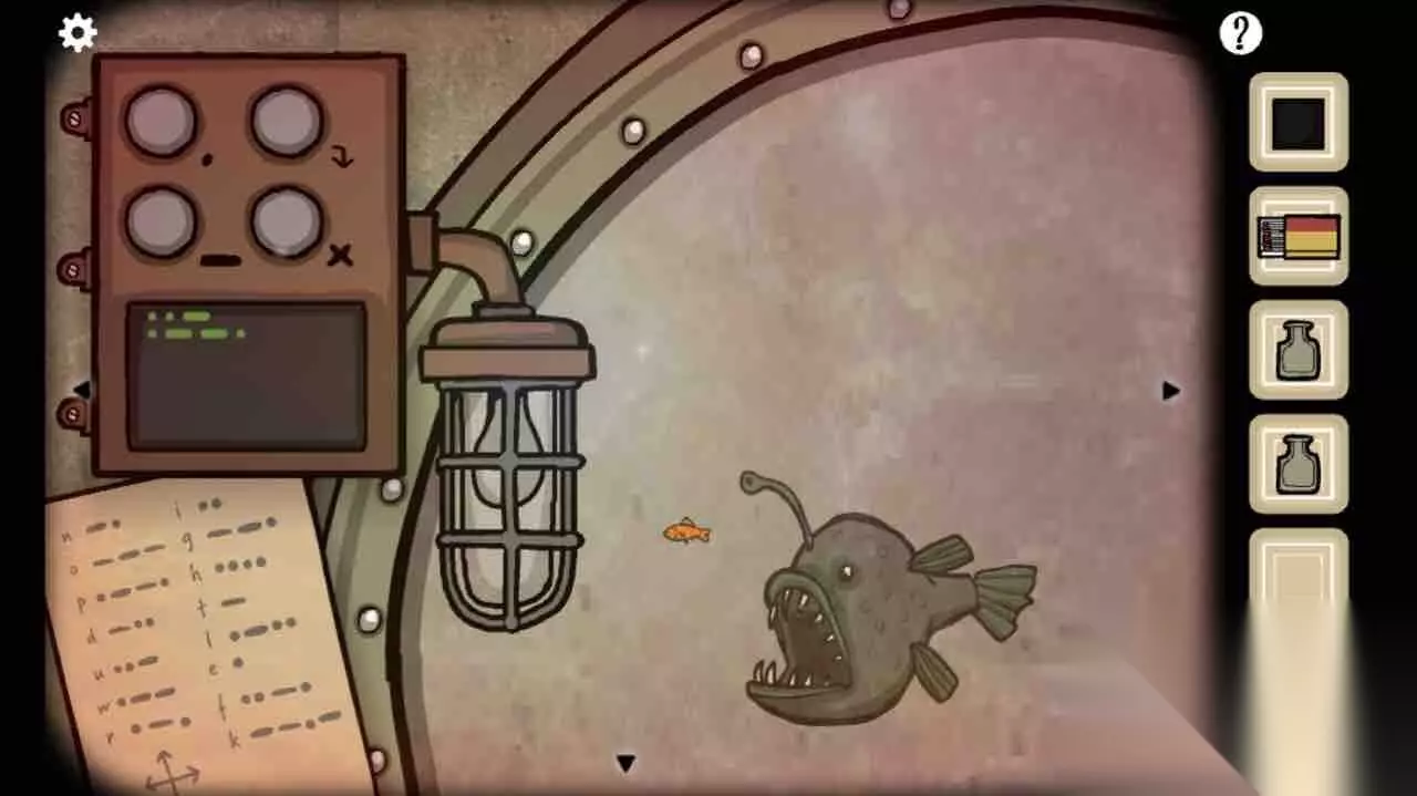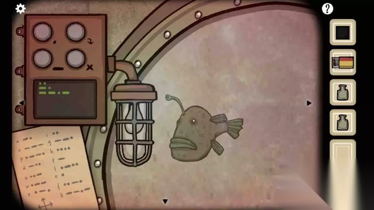 第20关 窗户里出现一条鮟鱇,对照莫尔斯电码表向它打出“up”和“left”指令,得到密码“ink”。