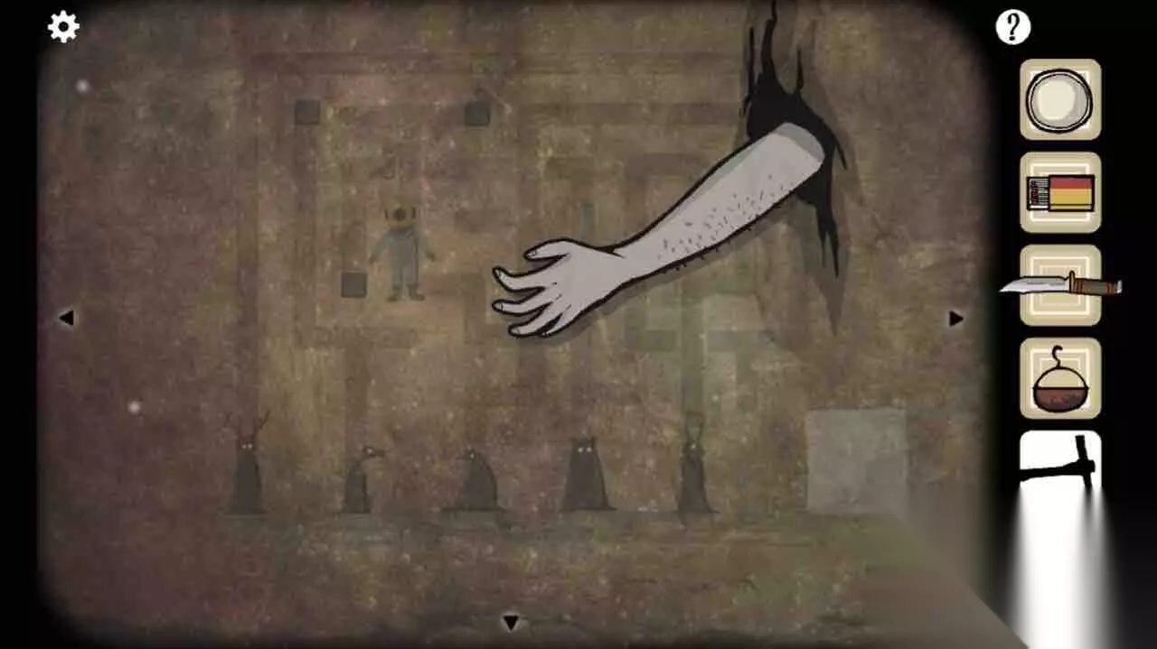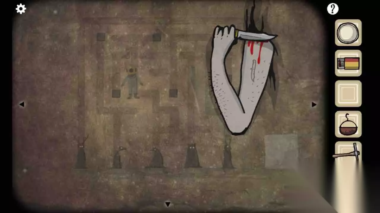 第8关 用镐砸开裂缝,伸出一只手,用刀割下手。