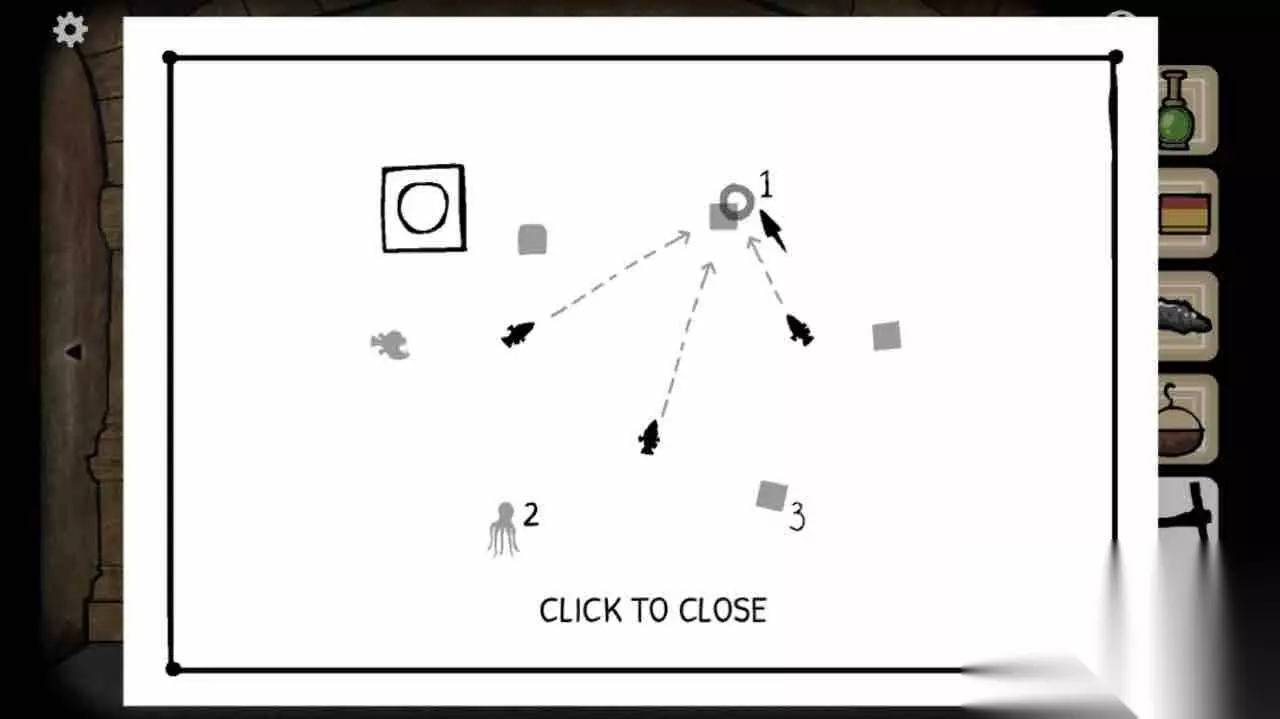 在窗户上移动圆钮,使鱼进入右边管道。抓住三条鱼后,窗户上每次会出现两条鱼,让先出现的鱼撞击左边红色按钮,再让后出现的鱼进入右侧管道。