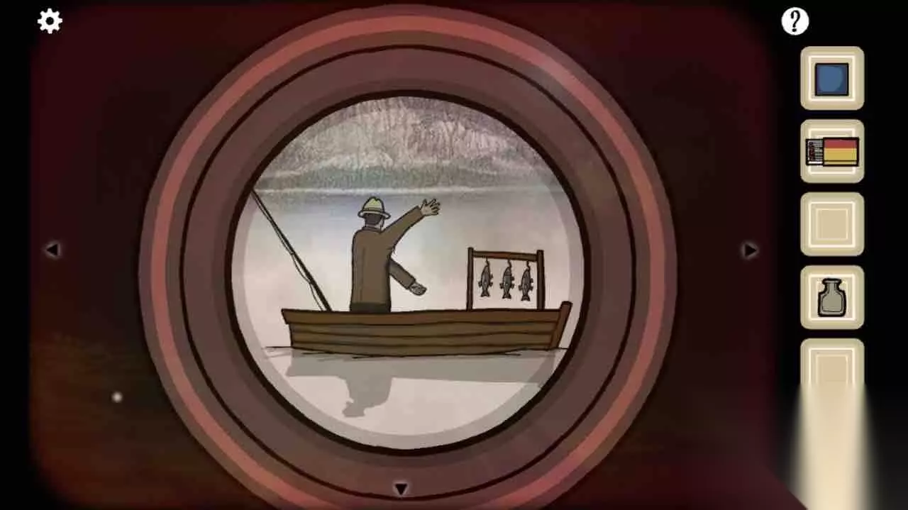 第21关 将蓝Cube放入发动机中。此时在瞭望镜里可以看到Dale在船上钓鱼,在窗户上按照同样的方式引鱼上钩。