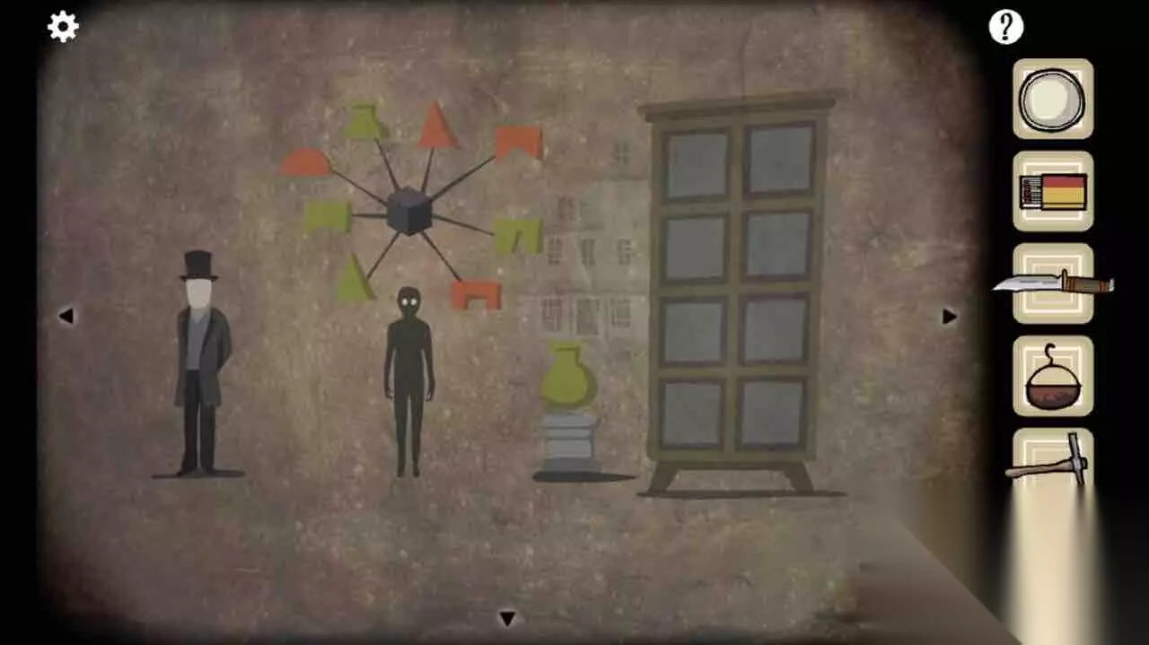 第5关 灯照亮了墙上的壁画,讲柜子上的图案和台子上的图案拼在一起(根据凹凸面),得到不死药,给炼金师兄弟喝下,得到飞蛾。