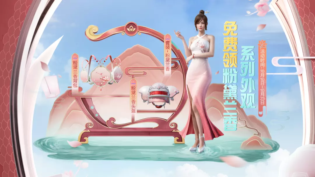 活动期间,完成任务获得粉黛兰香代币,集齐一定数量的粉黛兰香代币,即可领取粉黛兰香系列外观,包含套装-粉黛兰香、粉黛兰香全套背包、粉黛兰香全套头盔!