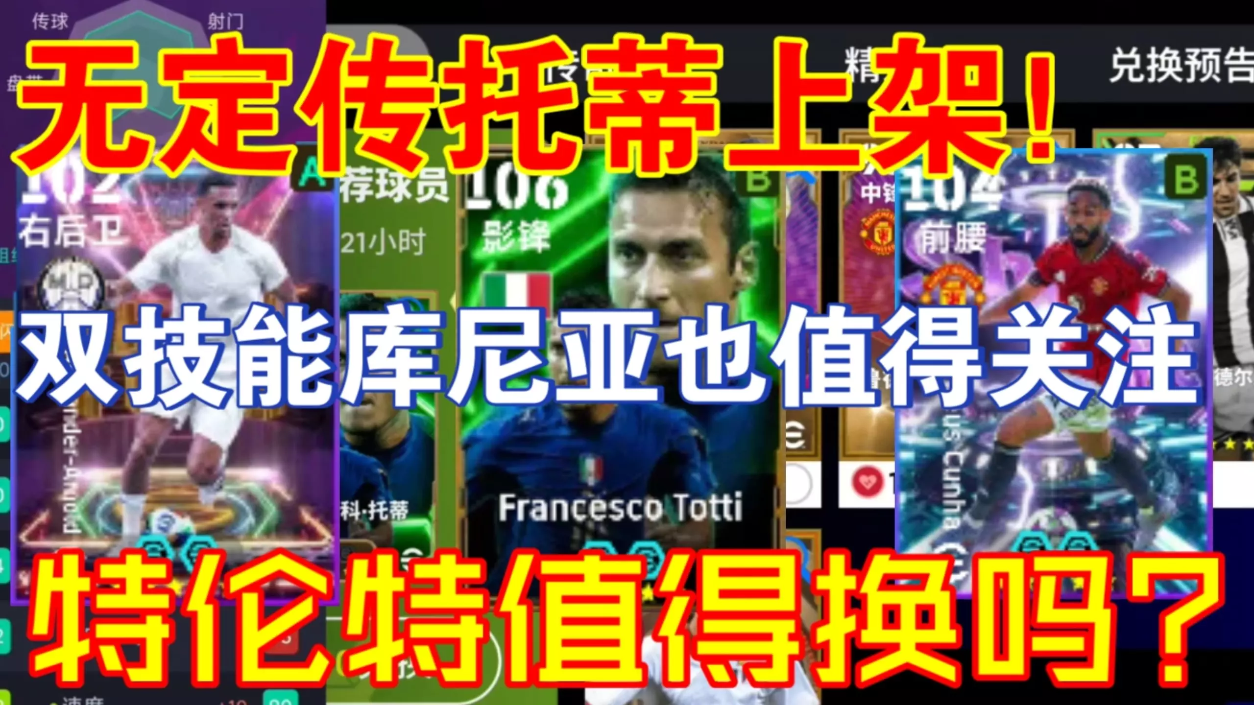 这是《实况足球手游》的游戏内容,介绍了被严重低估的托蒂卡牌,该卡为前腰位置,进攻意识、盘球、速度等多项属性优秀,能传能射,打前腰位置表现出色,前插跑位积极。