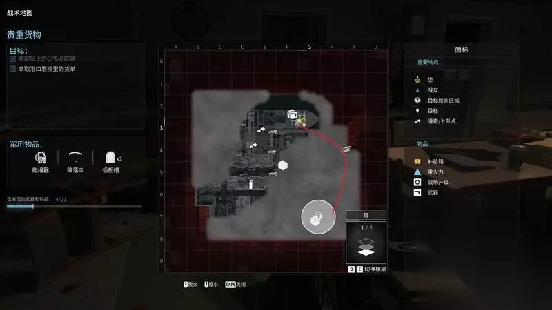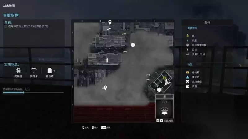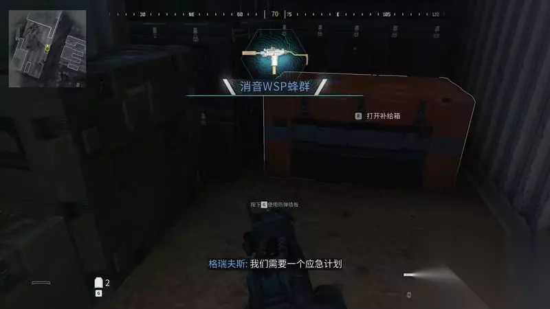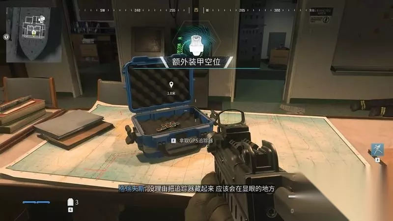 这里有武器箱可以更换武器。 游戏里各处都有这种箱子,可以随时补给和切换装备。 关键是尽快补足3个防弹插板槽以及板子,无人机、警戒机枪也可以玩玩看。
