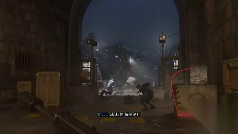 来到地面后有短暂的交战,点掉对面塔楼窗口里的敌人。 直升机出现后隐蔽好,会有其它小队将其摧毁。