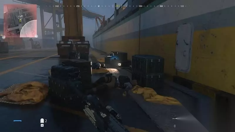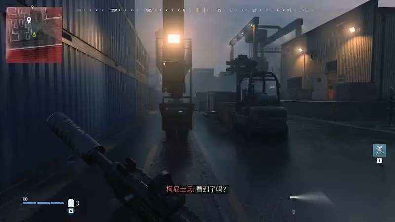进入坐标点集装箱,获得补给。 消音冲锋枪比较好用,非常适合本章的模式。 当然,想要大开杀戒,MTZ556也就是海军陆战队的突击/轻机枪会有亮眼的表现。