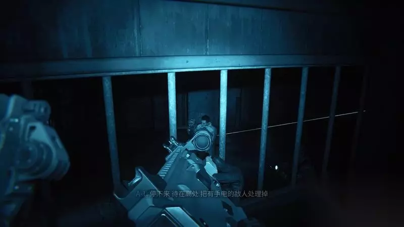 从天井盖进入监狱内部后,另一只小队会给监狱断电。 带上夜视仪下降。 基本上每层都有敌人,步步为营的下去。