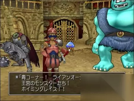G等级100Gちからの指輪Strenght ring,可以收服3个怪物。 F等级200GバニースーツBunny suit,可以和自己收的怪物在竞技场里进行对战。 E等级300G理性のリングRing of clarity,主角习得チーム呼び技能,在战斗中使用可以召唤出收得的怪物同伴。 D等级400G豪傑の腕輪Mighty armlet,可以收服6只怪物组成队伍。 C等级500G聖者の灰Saint's ashes,无 B等级700G斬魔刀Bardiche of Binding,可以组成2个怪物队伍。 A等级1000G英雄のヤリHero Spear,可以参加S等级。 S等级1000GドラゴンローブDragon Robe,最初和モリー大叔发生事件的地方,会有主角的石像摆放在那。 スライムSlime史莱姆:
