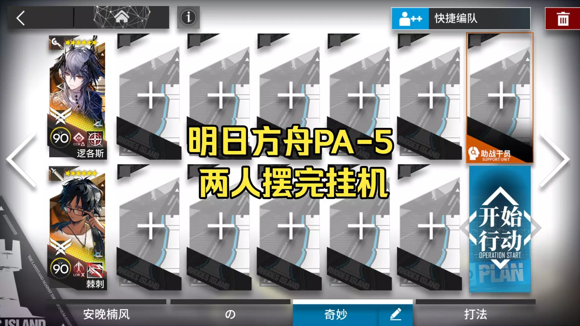 明日方舟中,所有的地图都能通过低配的阵容来通关,那么最新章节的5-9低配阵容该怎么通关,下面一起来看看吧。 低配阵容: