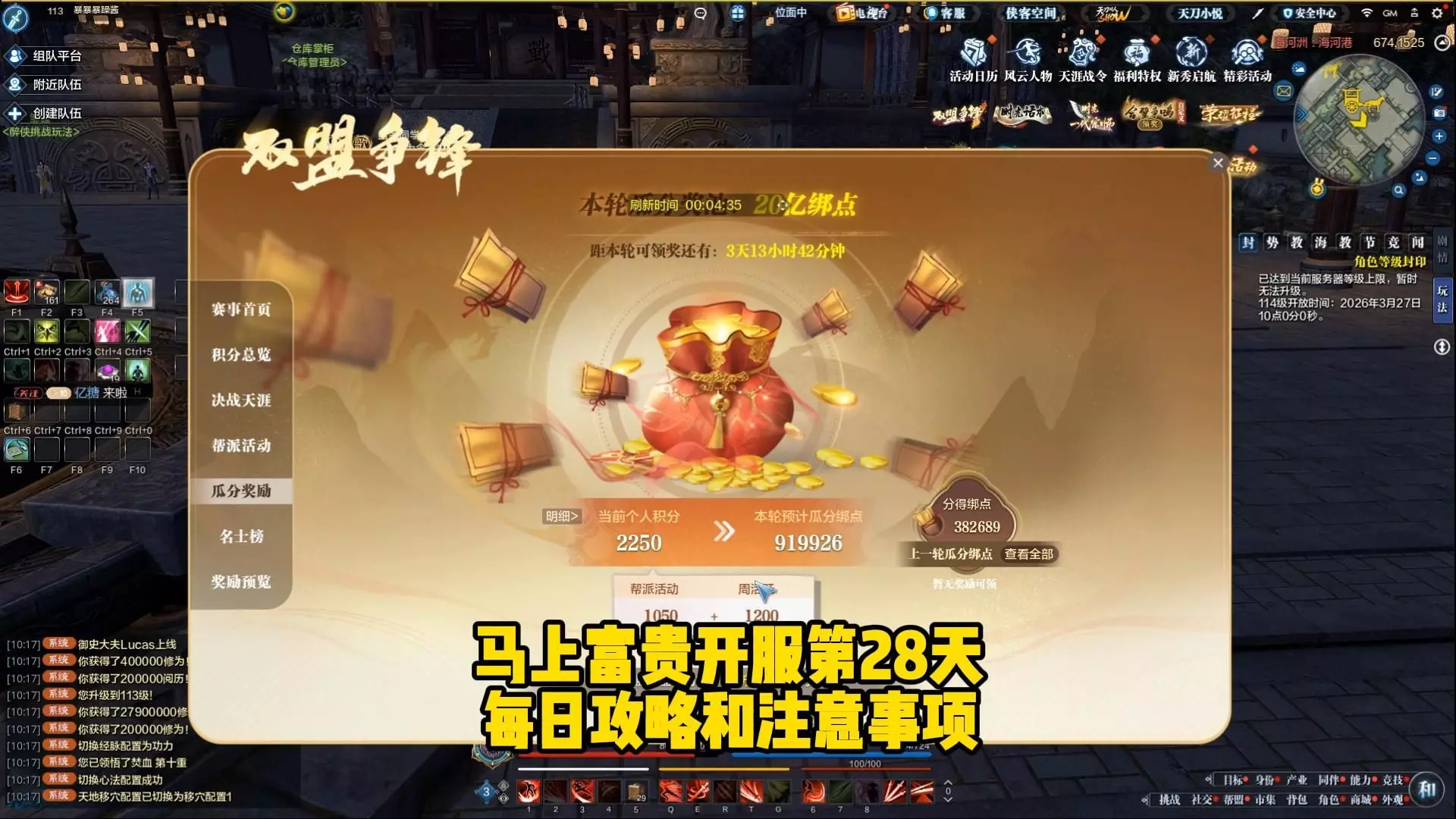 百亿绑点分红还在,基本上可以分100万绑点左右 然后1元的大铁还在 还是双盟争锋的模式!