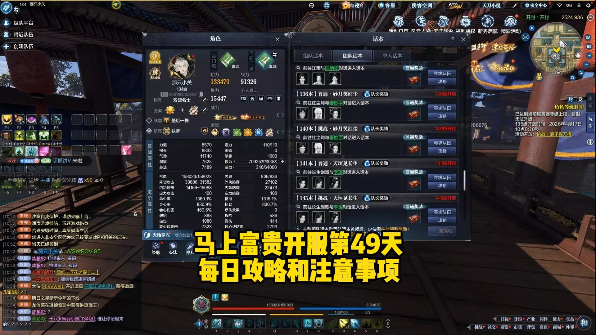 这是《天涯明月刀》怀旧服“马上富贵”开服第45天的攻略,当前仍为双盟争锋模式,玩家可领约100万绑点的百亿绑点分红,还有1元大铁福利,同时开放了经纬系统,还展示了琅纹、砭石培养、市集伙伴材料兑换等游戏内容。