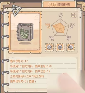 第二推荐玩家们兑换的,就是食人花自选宝箱里的植物种志,这个贵重推荐的原因很简单,换一次是5领导力(兑换一次就行),其它的就是加面板,镶嵌效果无亮点,不值得。