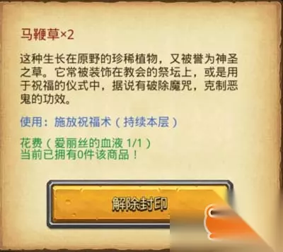 3.点选右上的打开的门购买"毒素采集装置"、"月光石粉末"、"马鞭草"共三样