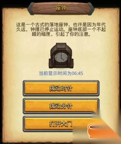 【步骤】 1、首先先把左右两边残骸跟左下书架东西先拿起来; 2.左上座钟时间调到6:45后选择"打开大门"