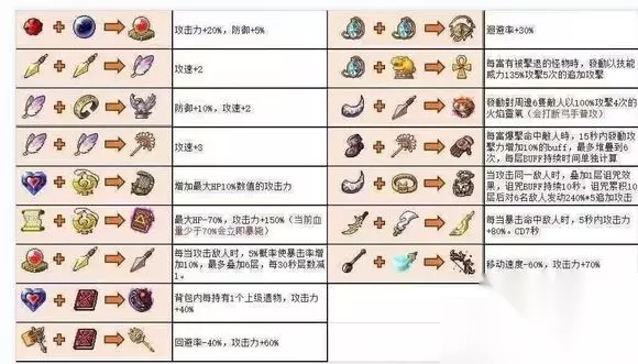 冒险岛金字塔的合成公式和通关技巧,可能有很多朋友还不太了解。其实,在金字塔小游戏中,装备的合成是有特定的配方的。下面我将与大家分享冒险岛金字塔的合成公式以及通关的一些技巧。如果你对此感兴趣,快来跟我一起了解吧! 冒险岛金字塔合成公式和通关技巧分享: 1. 金字塔遗物的合成公式如下图所示(可放大查看),如果图中没有列出的装备只能通过随机合成获得。 2. 在属性祭坛、技能祭坛、装备箱子和金币祭坛之间,优先级排列为:属性祭坛 > 技能祭坛 > 装备箱子 > 金币祭坛(后期主要是技能满了后,属性大于装备大于金币大于技能)。 3. 初期选择攻击属性,中后期可以根据当前已有的属性和装备来选择堆积闪避或防御。具体需根据实际情况分析。 4. 后期基本上需要有一个高级戒指,与背包中的高级遗物配合使用,伤害会很高。如果能合成复活面具,那么能保证稳定度达到一半左右。 5. 对于罐子,最好在清理完怪物后再进行攻击,否则容易手忙脚乱触发毒气。特别是需要提前清理的毒虫和头部的狼牙棒,尽早解决。另外,某些地刺的位置可能与地图融为一体,需要注意避免触发。