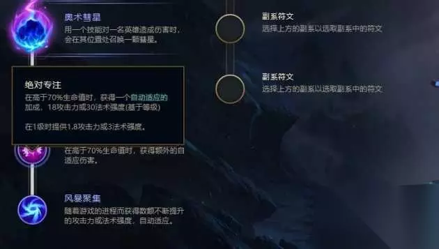 绝对专注中也有适应之力 适应之力的主要作用就是提升英雄前期的伤害,让打野英雄前期更容易刷野,让对线英雄补刀和打架伤害更高,让英雄在前期有小幅度的提升,战斗力更强。很多符文中都会增加适应之力,比如巫术的绝对专注、水上行走、风暴聚集,主宰的黑暗收割、电刑、掠食者和眼球收集器等等。