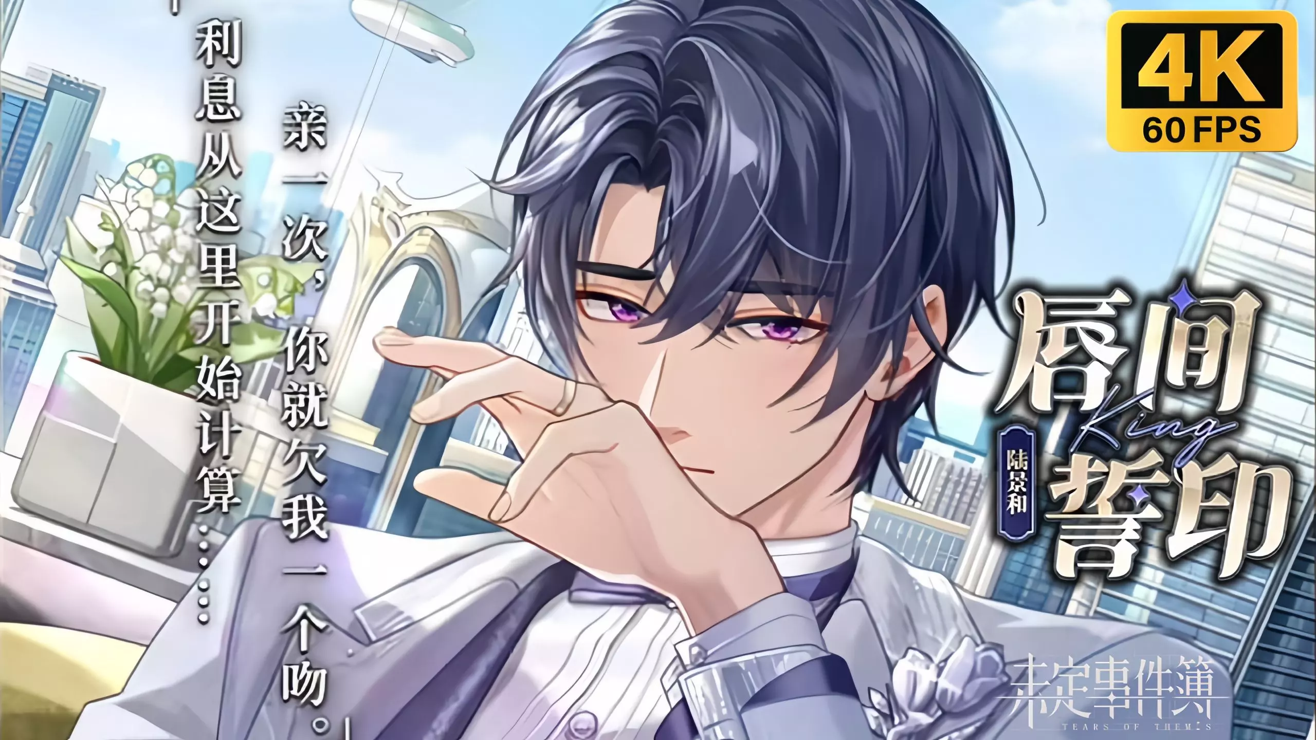 这是恋爱养成游戏《未定事件簿》里陆景和的“唇间誓印”邀请函相关内容,图中陆景和造型精致,还说出浪漫台词,尽显与玩家的甜蜜互动。