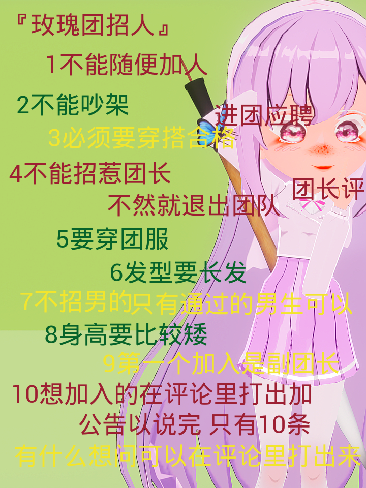 玫瑰团招人公告 红色是必须要看的 绿色可以看也可以不看 黄色比较要看