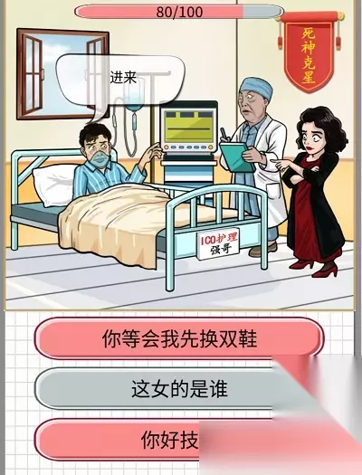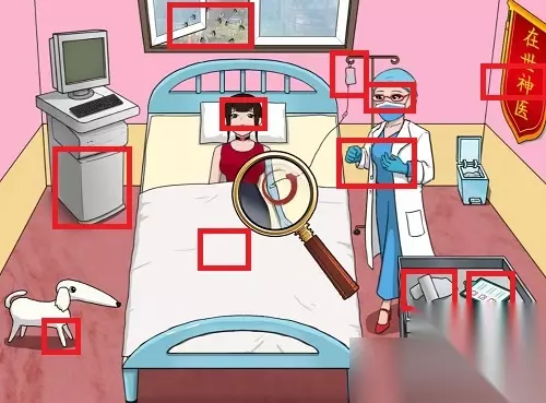 五、砍价整形院 1、用“透视镜”完成通关,先在右侧推车上,点击“洁厕灵”; 2、然后在洁厕灵的右侧找到并点击“圆规”; 3、查看医生的双手,点击“刀叉”; 4、再查看医生的眼睛,点击“眼罩”; 5、在输液袋位置,点击“牛奶输液袋”; 6、在世神医变成在世“兽”医; 7、点击女生的“眼睛”; 8、查看女生的“左腿”; 9、点击小腿前肢“右腿”; 10、查看机器下,发现是一个“煤气罐”; 11、用透视镜查看推车最下层的“文件”,再点击受益人“王医生”; 12、长按窗户,用透视镜查看“被咬的手”,并点击; 13、完成以上操作后,最终报价为0元,点击“成交”即可。