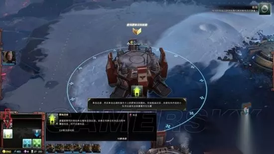 系统玩法解析-建筑 游戏开始时,三族通常都会有一个总部,玩家通过在总部制造基础兵种和修建者开局游戏。 你可以左键目标建筑并右键其它区域设定集合点,该建筑生产的单位就会全部自动前往集合点。 左下红框内就是建筑可以建造的兵种,蓝框内则是建筑的升级、辅助功能。