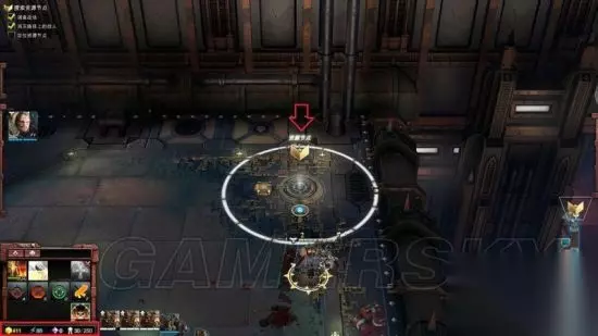 系统玩法解析-资源/节点 游戏内的资源如图左下红框所示。 金色:军备资源,是所有建筑、兵种和升级花费的主要资源。 蓝色:电力资源,高级建造所需要的资源。 紫色:精英点数,用来解锁精英的资源。 人口:人口数量超过临界值后会变色,资源获取速度会降低。 玩家可以通过获取箭头所示节点来加速资源的获得量。