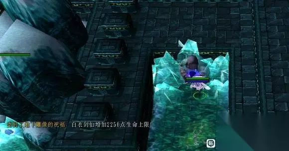 狼村前的下水道雕像供奉苍寰石,获得单体生命值加成