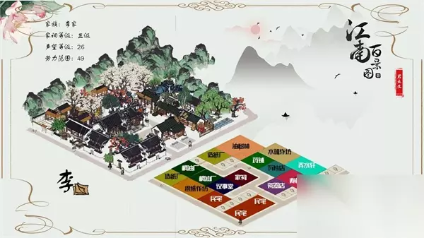 《江南百景》徽州府已上线。徽州府有四户人家,每户人家的排列方式都不同。那么四大徽商家族如何更好的布局呢?下面我们就来看看吧! 一、前言 本文是四大家族三、四级祠堂布局指南。旨在为追求高级祠堂的太守提供帮助,提供布局思路,但并不否定一级、二级祠堂的选择。布局所需的影响范围如图所示。从位置上看,王家在大角牌坊右侧,奚家在大角牌坊左侧,李家在左上角天阁巷,叶家在右侧长庆寺一侧。选址仅供参考。四层布局是最紧凑的布局。知府可以根据个人情况进行搬迁。 二、布局主体 1.汪家 王家是大家初来徽州第一个接触的家庭。与后续家族相比,制作难度和布局难度都比较友好。不仅王氏,后来的家族也广泛采用覆盖生产建筑的方法来达到美观的目的。 1.1 王氏三层祠堂布局1