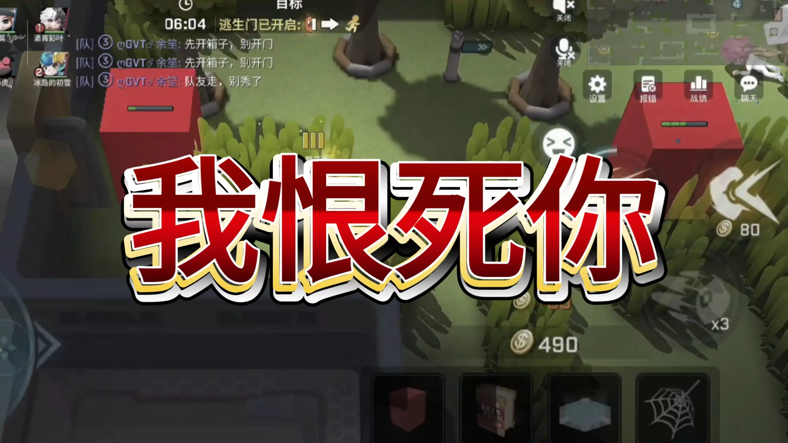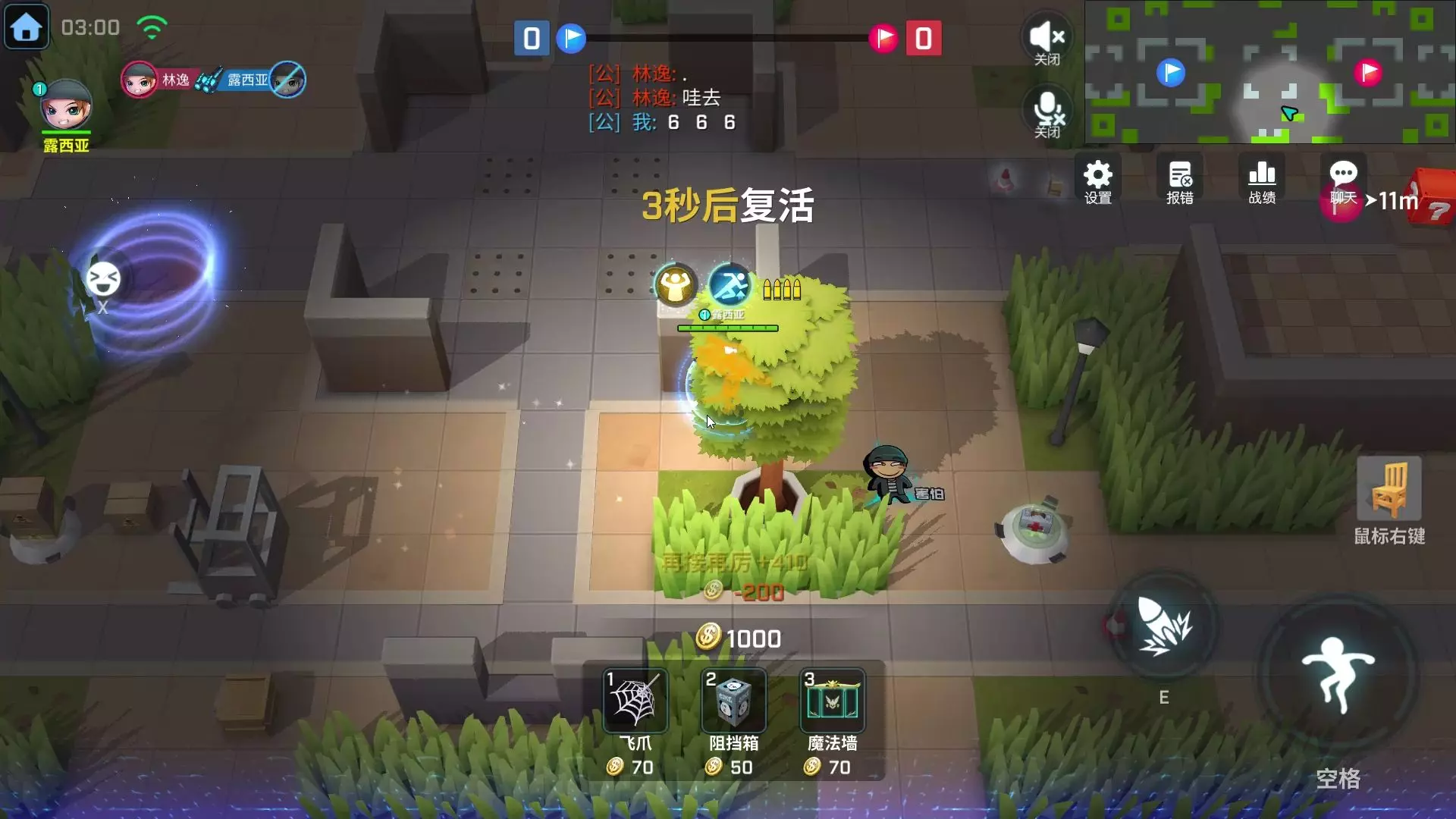 这是《逃跑吧!少年》的游戏对局内容,玩家在关闭武器自动瞄准的情况下,使用战术捣弹、传送门等道具,完成抓捕目标,和队友交流互动,展开趣味电子竞技对战。