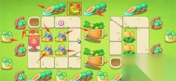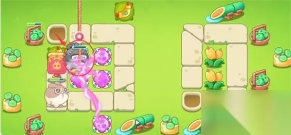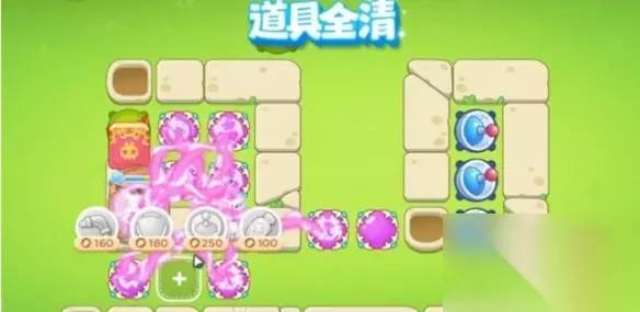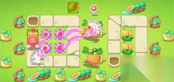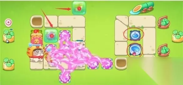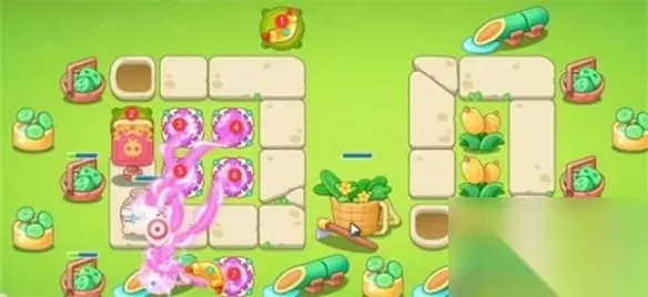 4、我们在如图所示的位置补上3个魔法球,轻松消灭掉木桶兔。