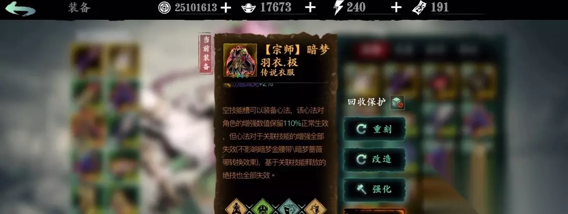 拿到暗梦羽衣后,别忘了进一步强化它。可以通过吞噬其他装备来提升品质,比如升到宗师级别。洗练刻印槽时,优先选择减CD或者增加输出的属性,这样能让装备的效果最大化。平时刷图或者打BOSS时记得穿上它,实战中慢慢调整搭配。