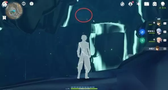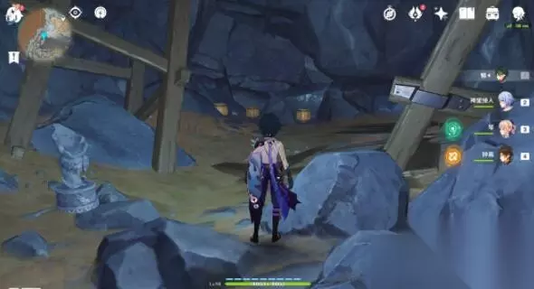第八个「渊青宝珠」位置: 1、前往下图点位,引爆旁边的“岩丘丘萨满棍子”,可以破坏掉墙壁。