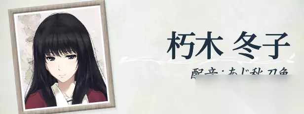 朽木 冬子 (CV: あじ秋刀鱼) 职业:学生 昭和三十一年三月,她在井之头公园遇见了侦探时坂玲人,并委托他“寻找真正的自己”。 这个怀抱深邃孤独的少女,逐渐喜欢上了能够理解她的时坂。 内心同样带着深深伤痛的两人最终结合了。 然而,被卷入事故的冬子在濒死状态下被绑架了。 而那时的她,体内已经孕育了新的生命——
