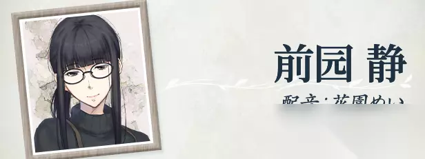 前园静 (CV: 花园めい) 职业:画廊员工 在位于吉祥寺的笹仓的画廊工作的女性。性格懒散,做事马马虎虎。 收集工作上会用到的老旧画材已经变成了她的兴趣。 有些不修边幅,不太在意自己的穿着和外表,甚至连被颜料弄脏也毫不介意。 真崎曾在这家画廊工作过,所以她和真崎算是前同事。 她似乎不太擅长记住别人的名字,每次遇到真崎都会叫错他的名字。