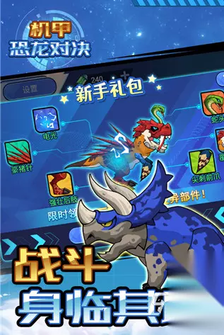 这是一款融合AR技术与策略养成的创新手游。玩家化身恐龙驯养师,在现实地图中扫描定位,用虚拟捕捉器收服霸王龙、翼龙等百种史前生物,组建专属恐龙军团。游戏世界观设定于平行时空的地球,人类与恐龙因时空裂隙意外共存,玩家需在危机四伏的丛林、沙漠、沼泽中建立庇护所,抵御其他掠食者与敌对阵营的侵袭。每只恐龙拥有独特进化树,例如迅猛龙可强化速度突袭,三角龙可解锁群体防御技能。 扫码下载该游戏 高速下载 普通下载 优先233乐园APP下载 6、《机甲斗兽场》