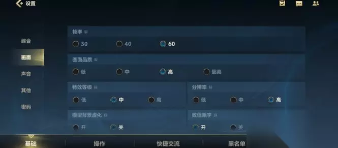 一、基本设置 在基本设置中,把焦点放在屏幕上。您可以打开图形设置中的自定义。根据你手机的性能,你会优先保证帧率(目前最高60帧,以后会提升到120帧),然后是特效和分辨率。这三点对游戏体验有很大的影响。
