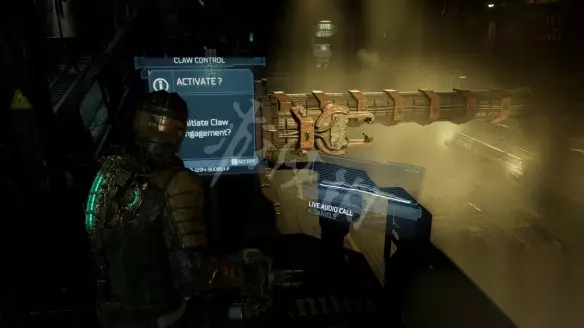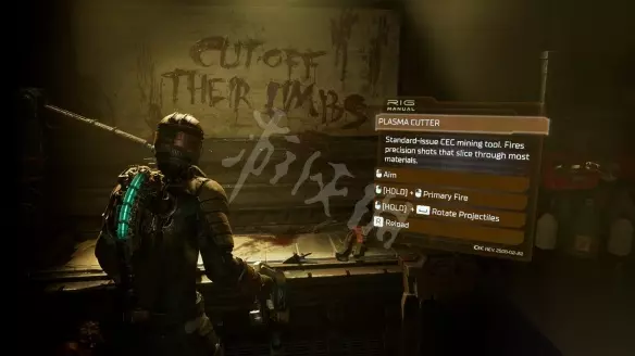第一章 武器/护甲/升级 武器1—等离子切割机: 下电梯后,坐在服务车间的长凳上。