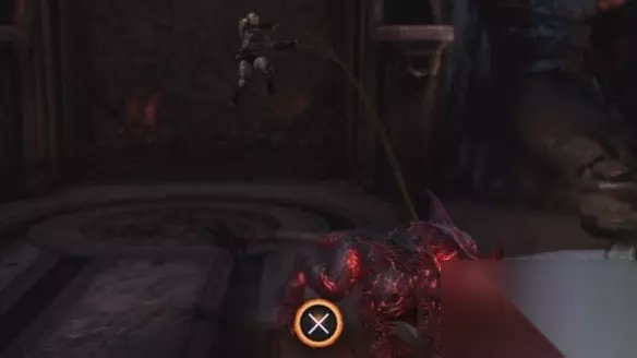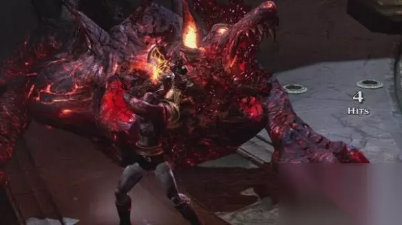 接着跳下去,利用两个跳跃点到对面的平台,用弓箭或者双刃解决掉四个敌方弓箭手,存个档继续征途,跳上前方的平台,用阿波罗之弓烧毁阻挡前路的荆棘之后,两只看门的火焰地狱犬也随之而来,狗狗的攻击方式很简单(1、爪子攻击:可以防御和弹反;2、扑击:不可防御,QTE对抗;3、地面猛击:可以防御和弹反;4、喷火球:)熟悉了他们的招式对付他们就显得游刃有余了,每只狗需要3次QTE才可以解决,一次一个头,你也可以直接开“斯巴达之怒”解决一只,然后对付另外一只即可,战斗结束后别忘了后方还有一个补充生命的箱子。