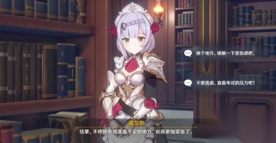 t15_2-t15_1:13.0 标签: 艾尔 、 诺艾尔 最新版的原神又更新了不少内容。其中,诺艾尔邀约事件开启了第二章。艾尔邀约第二章如何完成?接下来,就来说一说原神诺艾尔邀约第二章攻略。 此次更新的邀约事件一共可以达成6个结局。其中,“你气色不太好”、“重要的是开心,不用勉强自己”、“怎么和璃月的同伴合作,说不定会考到呢”、“她是西风骑士,不会干这种事”这4个选择,建议玩家不要选。 结局一、岩间稍憩 玩家需要找到诺艾尔,然后对话。 选择“缓解紧张感”的对话。