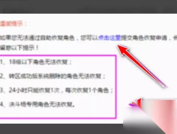 6、如以上操作无法恢复,点下方进行恢复,接着还可以看到角色恢复的要求,即可恢复,如图。