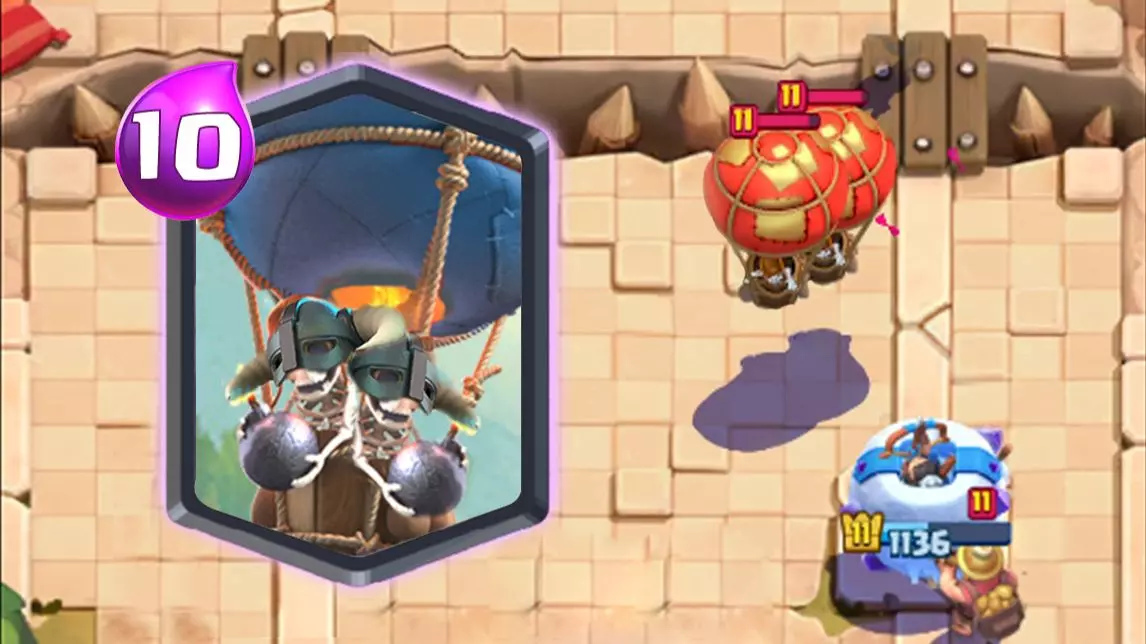 这是手游《皇室战争》的情报内容,抢先展示了精英卡“气球兵”,呈现了该卡牌的外观、圣水消耗数值,还有它在对战中的攻击等实战表现。