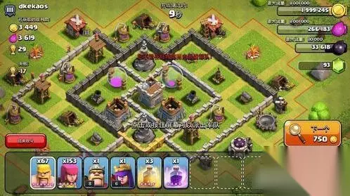 阵型二:互资源阵 所谓护资源阵,就是将金罐和圣水瓶放到中间位置,周围散步防御建筑,可以有效的保护资源!