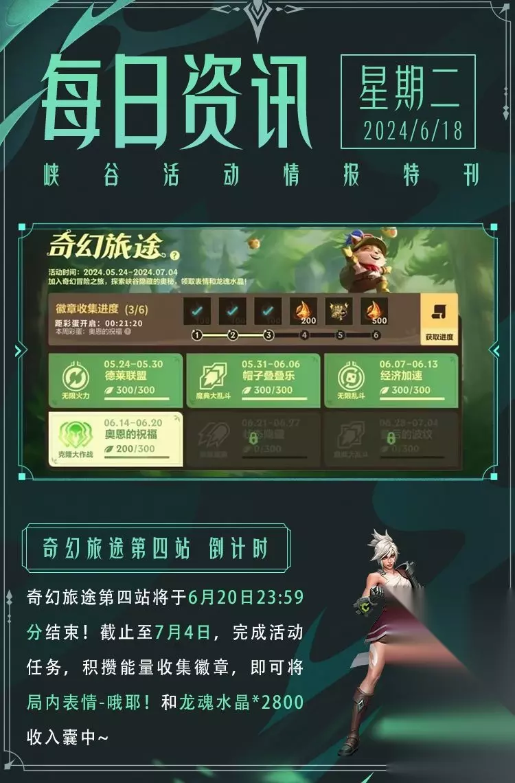 活动:奇幻旅途 时间:截止至7月4日 奖励:局内表情-哦耶!,龙魂水晶*2800