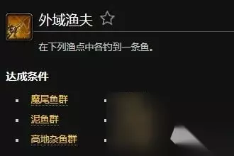 有玩家想获得魔兽世界的外域渔夫成就,但是不知道魔兽世界外域渔夫成就怎么做,可以在魔尾鱼群、蓝鱼群、泥鱼群、金镖鱼群、高地杂鱼群、孢子鱼群各钓到一条鱼后获得。 魔兽世界外域渔夫成就怎么做 答:在魔尾鱼群、蓝鱼群、泥鱼群、金镖鱼群、高地杂鱼群、孢子鱼群各钓到一条鱼。 1、外域渔夫成就需要玩家在魔尾鱼群、蓝鱼群、泥鱼群、金镖鱼群、高地杂鱼群、孢子鱼群各钓到一条鱼。