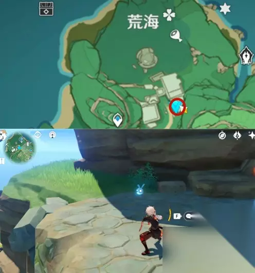 原神稻妻特殊宝藏在哪 特殊宝藏一 1、前两个藏宝地的任务做完后得到的零碎地图是特殊宝藏的线索,可以判断出是荒海。 2、带着寻宝仙灵到荒海和鸣神大社中间的遗迹之后,就会有仙灵带你过去。 3、把任务给的仙灵带上后,到最左边的台子上,按照解密线索点亮地砖。 4、地砖踩第一下点亮,踩第二下熄灭,解密过程不离开那9个方块就能完成。