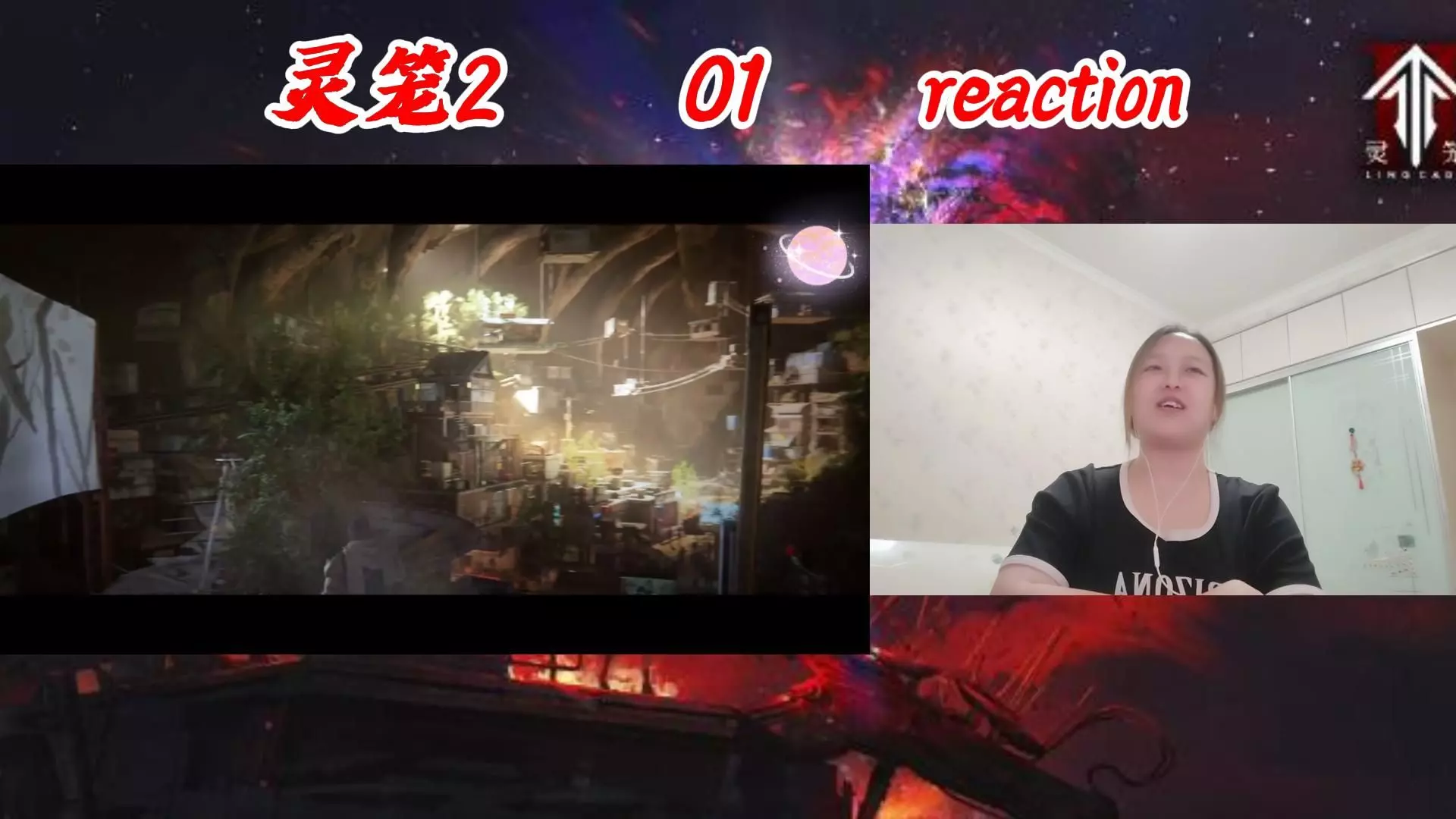 这是一则《灵笼》02-03集的reaction内容,博主观看相关内容,视频呈现了《灵笼》里的废土场景、灯塔以及战斗画面,传递出“死不可怕,我怕没有好好的活过”的情感内核。