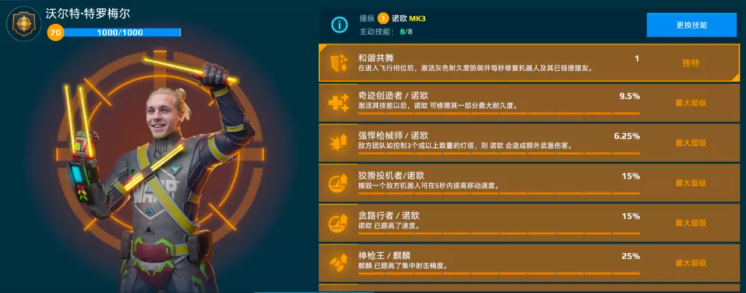 机师选择上,新双子的专属机师 [沃尔特・特罗梅尔]定是首选,其技能 “和谐共舞” 提供的灰色耐久度防御至关重要 —— 能让 [音喷] 等灰色伤害武器仅造成基础白色伤害,再搭配持续修复效果,可大幅提升[诺欧]与[里奥]的续航能力,显著降低 “坠机” 风险。