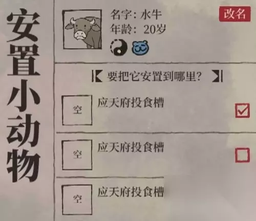 随后玩家可以在自己的城里面,然后建设这个投食槽,可以把动物放在对应的城市里面。